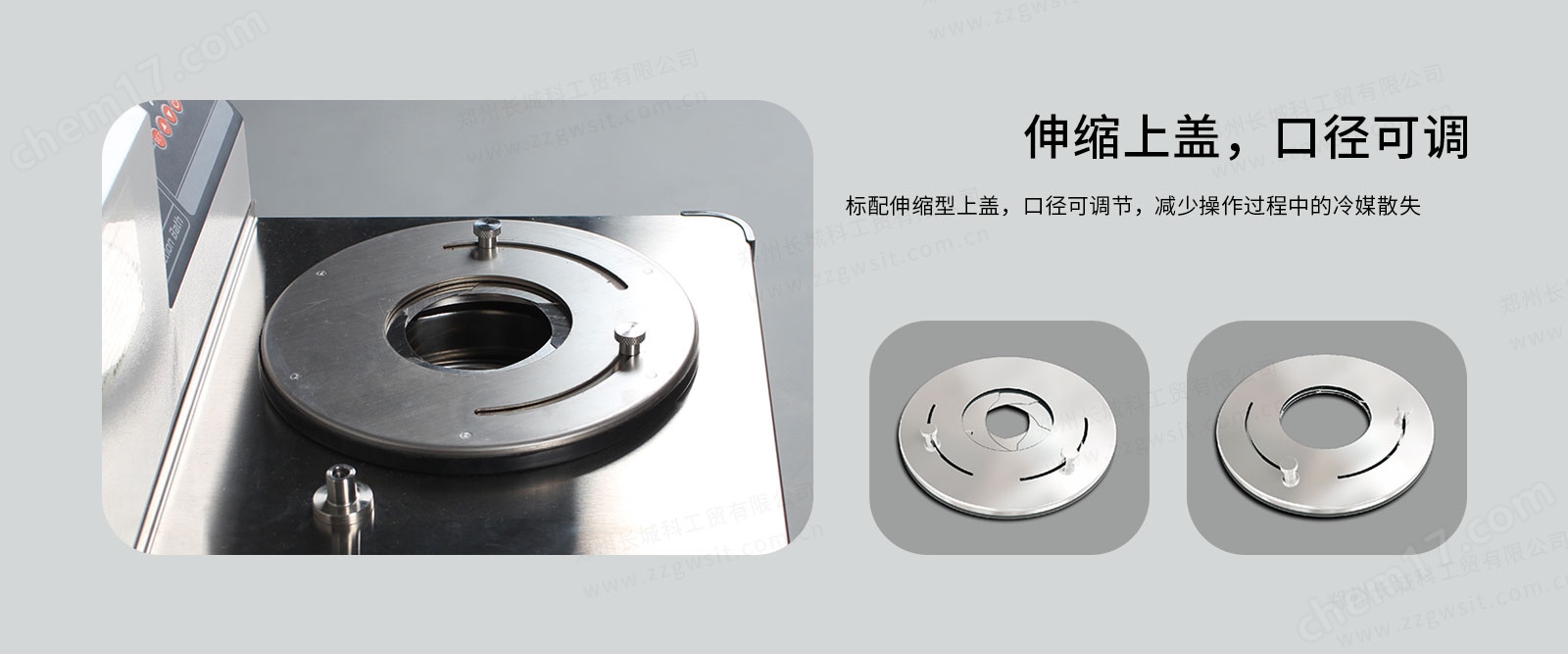 ●配置的伸縮蓋可以調整開口大小,適應反應容器的大小,減少冷凍液的揮發以及與外界的熱交換;